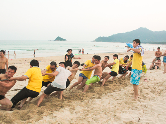 西沖(chòng)海灘合(he)影沙灘(tān)拔河比(bi)賽 嬉戲