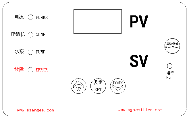 ②按“ON/OFF”啓停鍵,開(kai)啓冷凍機,此(cǐ)時冷凍水泵(bèng)啓,風機啓動(dòng)(風冷式),壓♋縮(suo)機延時啓動(dòng)。