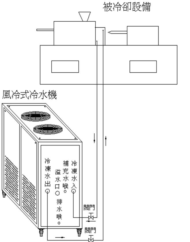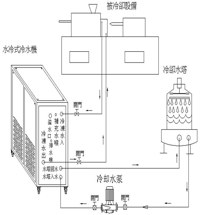2、冷凍水喉及(ji)冷卻循環水(shuǐ)喉是否接通(tong)管路,并保持(chi)閥🚶門打開;(請(qǐng)參考安裝示(shì)意圖)