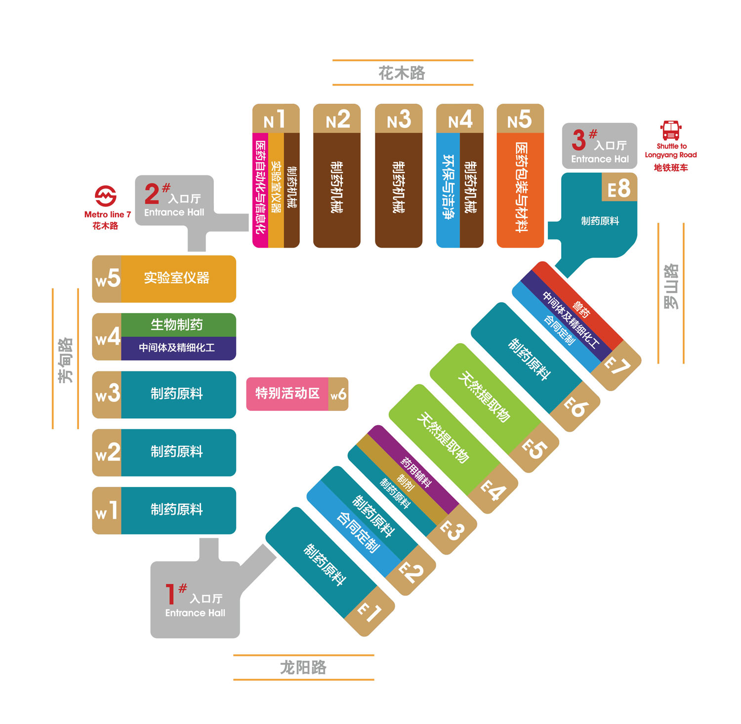 - E1 – E8, W1 – W4 館 : 第十九屆(jie)世界制藥原(yuán)料中國展(CPhI China 2019)